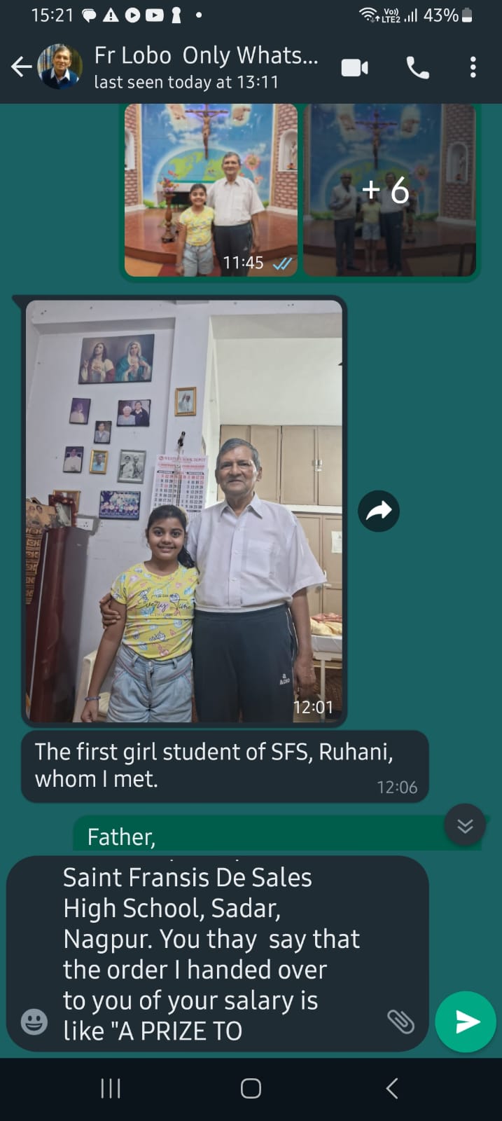 More pride it is within me, in fact, it is to me a proud that in your regime, I rolled over SFS, School, in fact there was a hate for the Minority School, since the SFS school was on government grant. It was then known Mantralaya ,before it was Sachivalaya. Actually an officer and a staff was from the school run by Zilla Perished or the schools of respective Corporations in the state of Maharashtra. Sir, Nagar Perished schools then were not in question since these missionary schools were mostly in urban areas. They do the business here and called themselves Minority, most of the Mantralaya employees said.“ Education Officer Shri Ram Pawar gave trouble to SFS school and a lot of trouble to you in particular. I heard it from Shri Anis Ahmad, your student, and the Ex-Minister in the state of Maharashtra, on a train journey from Mumbai to Nagpur. I know your school manager, along with you, took the matter before Nagpur Divisional Commissioner, … but in vain. Since he overruled the decision of an education officer to stopped your salary instead of all the SFS teachers. The authorities then for the silly reason were able to stop your salary for 9 months because yours was a Christian school, under the banner of Minority.“ I agreed that your school was and is on a fully state government grant. But yours school reputation these Marathi people were fully unaware of that the school started in Britishers time by the Catholic Priest who came from France. He who, in 1870 started the school in Kamptee first for the colony of the Britishers Soldiers Children. It was functioning till then that Nagpur Railway Station was not in existence in Nagpur.“